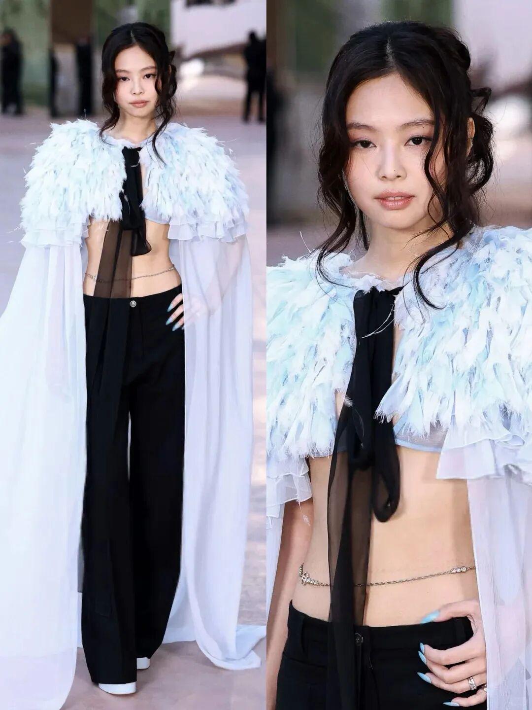 CHANEL 在巴黎大皇宫发布了 2026 秋冬成衣系列,“亲闺女”JENNIE 受邀现场看秀。看秀造型来自 1 月刚刚在纽约地铁站发布的 2026 早秋高级手工坊系列,是一条珠串打造的镂空套裙,内搭黑色内衣,灵动性感,脚上穿的是裸色高跟鞋,美得非常耀眼。这套造型是对传统 CHANEL“斜纹软呢套装 + 珍珠”形象的大胆改写,把品牌传统元素穿出了更年轻、性感、当代的感觉。
